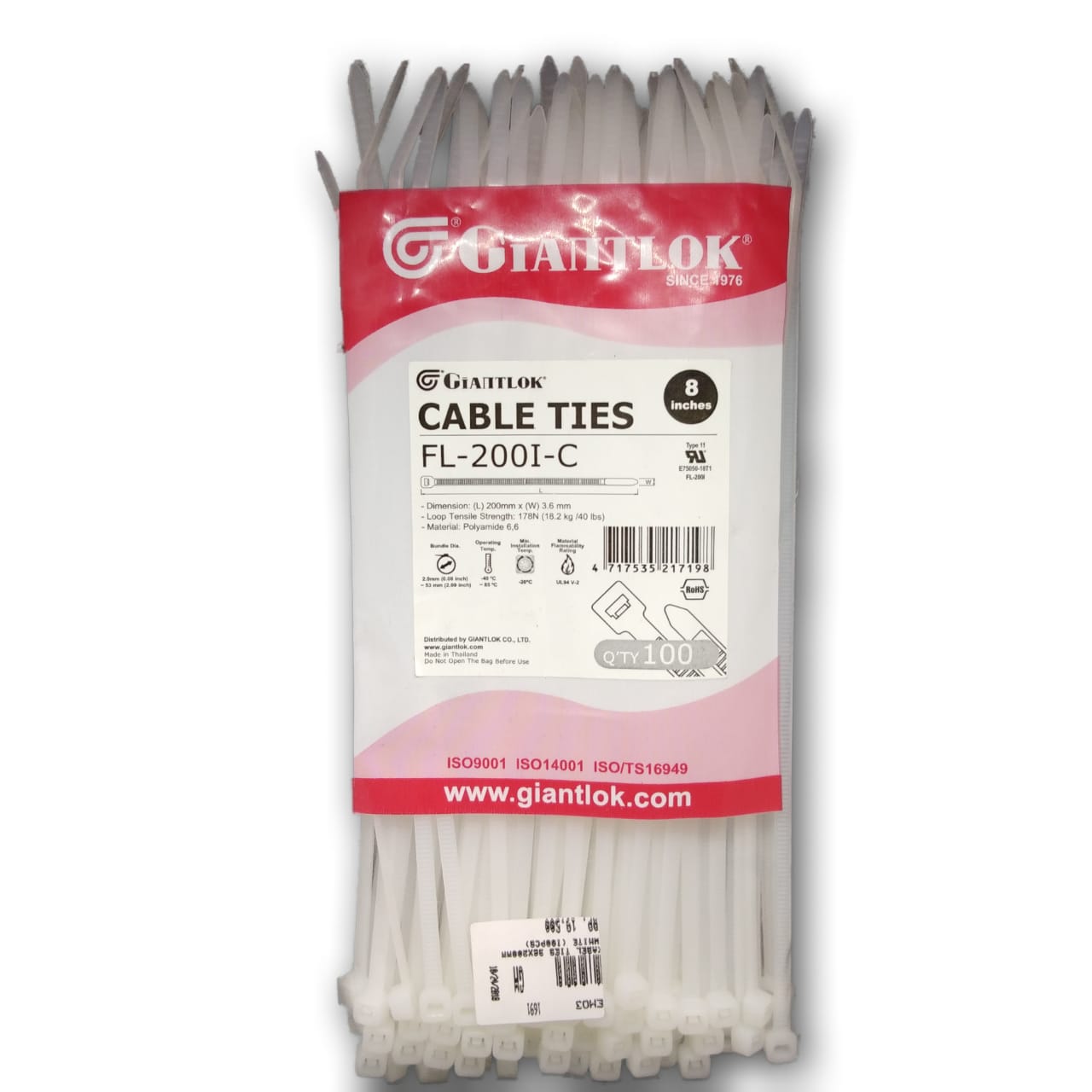 Kabel Ties 36x200mm white (100 pcs)